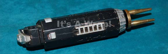 A prop believed to have been part of a Borg arm appearing in episodes of Star Trek: The Next Generation. The item is made from molded plastic painted black and metallic silver with a machined metal end that is colored bronze. The item features a two directional switch and a … |