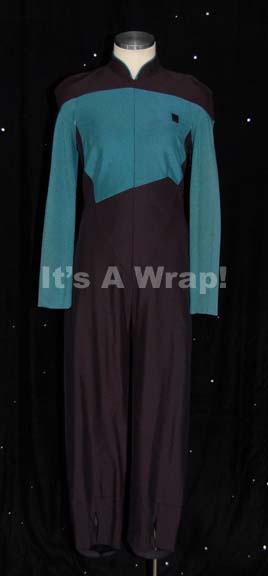 A costume featured in various episodes of Star Trek: The Next Generation and reused for the finale episode of Star Trek: Enterprise. This costume is a TNG-style Starfleet uniform jumpsuit featuring black shoulders, a Sciences Blue chest, back, sleeves, and piping around the Mandarin collar; a black waist and legs … |