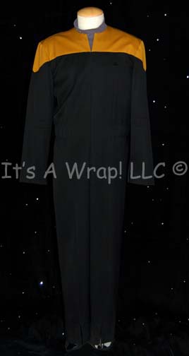 STAR TREK: VOY “SCIENCES BLUE STARFLEET UNIFORM JUMPSUIT –MALE” This Starfleet uniform jumpsuit is black with Sciences Blue division shoulders that zips up the front, clasps at the top, and features a Velcro patch on the left breast for a Starfleet ‘commbadge’ (sold separately). The waist features form fitting black … |