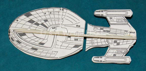 A white foam core fashioned camera test model miniature of an Intrepid-Class ship like “USS Voyager” like those appearing in various episodes of Star Trek: Voyager. The item is composed of glued together sections of fashioned white foam core with graphical details adhered on the dorsal side for detail. The … |