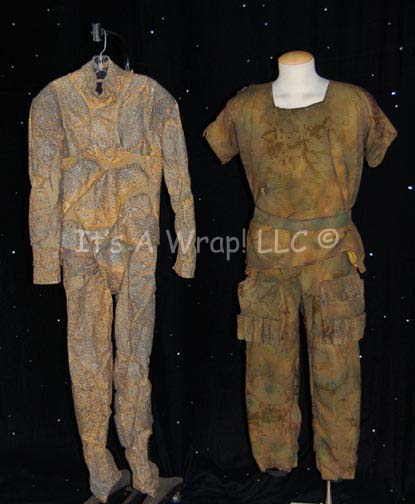 A lot of costumes featured n various episodes of Star Trek: Voyager in episodes like “Blood Fever” and “Nemesis”. The first costume is a stunt “Chakotay” (Robert Beltran) costume from the episode “Nemesis”, a short-sleeved, yellow shirt with camouflaged, mesh over it, matching trousers that have Velcro sealing pockets, five … |