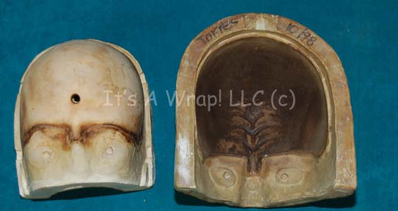 A special effects make-up application mold made to create an application for the character “B’Elanna Torres” (Roxanne Dawson) in episodes of Star Trek: Voyager. The item is a heavy duty firing ceramic in two pieces, one bare, the other with the reverse mold of a Klingon forehead. The item is … |