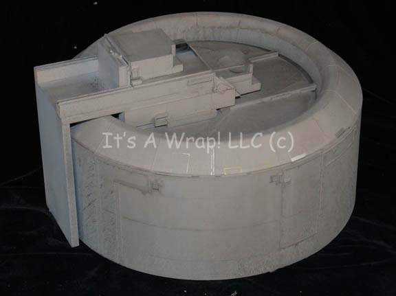 A model component featured in the Star Trek: Deep Space Nine episode “Once More Unto the Breach” used as part of the Dominion starbase on ‘Trekla V’. The item is composed of cylindrical cardboard with a plastic lid, all of which have been painted beige with wood and plastic details … |