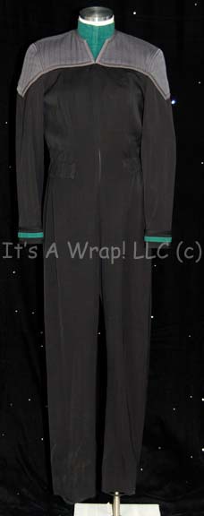 A costume featured in various episodes of Star Trek: Deep Space Nine. This costume consists of a sleeveless, full-length, jumpsuit with the top half a black, spandex-like material, the bottom being neoprene over a gray fabric featuring a starburst pattern down the middle and stirrups for the feet. A distressed … |
