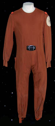 A costume featured in Star Trek I: The Motion Picture, a brown Starfleet Class-D jumpsuit with attached shoulder division strips colored orange, an affixed Earthbase shoulder patch on the left sleeve depicting the solar system and the planets orbits, and an attached plastic bio-monitor. The costume is intended for male … |