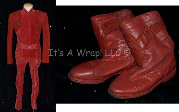 A costume featured during the last season of Star Trek: Deep Space Nine for wear by Nana Visitor in the role of “Colonel Kira Nerys”. This costume consists of a long-sleeved, full-length rust-colored jumpsuit featuring a deep red, textured, “X” pattern across the chest, back and down the sleeves, slightly … |