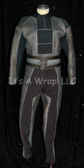 A costume featured in various episodes of Star Trek: Deep Space Nine. This costume consists of a black, molded, cast rubber uniform armor in the Cardassian-style, made to be worn over a gray, Spandex jumpsuit with ribbing running down the legs. Also included is a cast holster for a disruptor … |