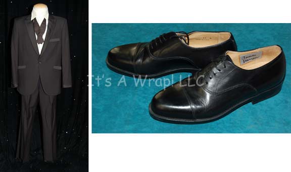 A costume lot featured in various episodes of Star Trek: Deep Space Nine including “Badda-Bing, Badda-Bang”. This lot consists of a complete tuxedo, minus the socks, including extra buttons, shoes and a white, silk handkerchief for the pocket; three long-sleeved, white dress shirts, a long-sleeved tuxedo jacket, trousers, and bowtie. … |