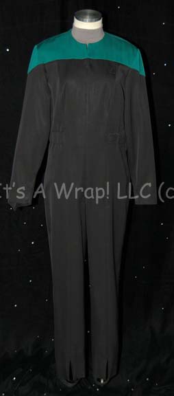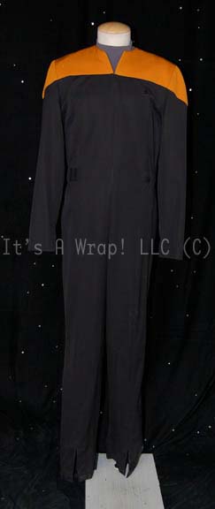 A costume featured in various episodes of Star Trek: Voyager. This costume is a black Starfleet uniform jumpsuit with Operations Gold division shoulders that zips up the front, clasps half way up the chest, and features a Velcro patch on the left breast for a Starfleet ‘commbadge’ (sold separately). The … |