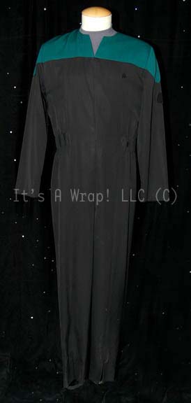 A costume featured in various episodes of Star Trek: Voyager. This Starfleet uniform jumpsuit is for wear by Christine Delgado in the role of “Lieutenant Susan Nicoletti”, it is black with Operations Gold division shoulders that zips up the front, clasps at the top, and features a Velcro patch on … |