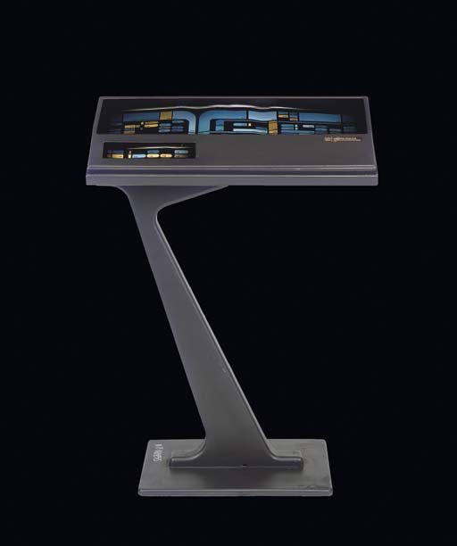 A freestanding console featured in the Star Trek: Voyager episode “Flesh and Blood, Part I” as part of the captured Hirogen ship set. The item is distinctively of Cardassian origin and believed to have been part of “Deep Space Nine” sets prior to alteration for Voyager. The item is fashioned … |