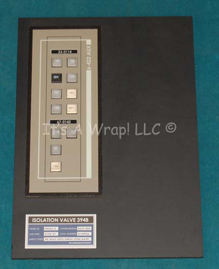 A piece of set dressing similar to those featured in throughout Star Trek: Enterprise. This item consists of a piece of black, rectangular, sheet plastic featuring a graphical application, two lines of vertically oriented, multicolored rubber faux buttons with numerical values, a label at the side that reads ‘6-422 AUX’ … |
