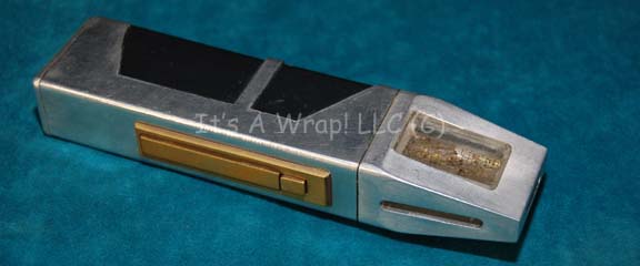A prop Starfleet scanner of the style used by “B’Elanna Torres” (Roxann Dawson) in the Star Trek: Voyager episode “Initiations”. The scanner is made of metal with resin accents and a clear section at the top that has gold colored circuit board style detail within it. A button on the … |