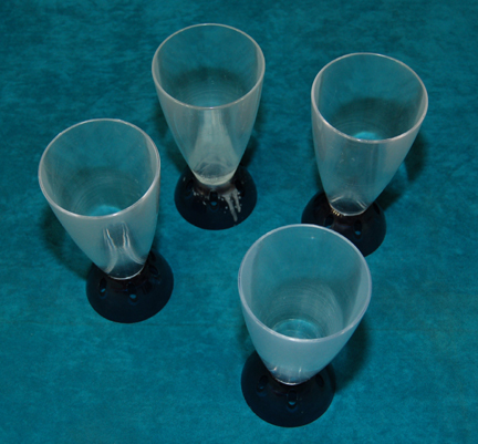 A lot of four drinking glasses featured in the Star Trek: Voyager episode “Mortal Coil” for use by the crew of “U.S.S. Voyager” during the Talaxian festival of family, Prixin. The items are clear plastic drinking vessels with translucent blue bases that have six holes ringing them. The items measure … |