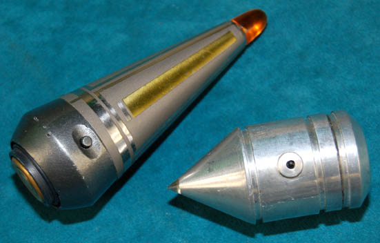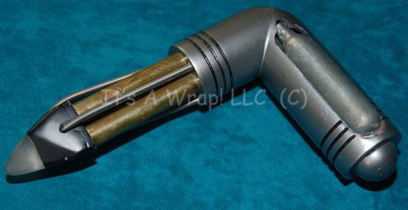 A Starfleet medical thrombic modulator and scanner featured in the Star Trek: Voyager episode “Message in a Bottle”. The modulator is made of metal with a cone shaped top. A small button on the side activates a red light at the tip. Measures approx. 3 ¼ x 1 ½ inches … |