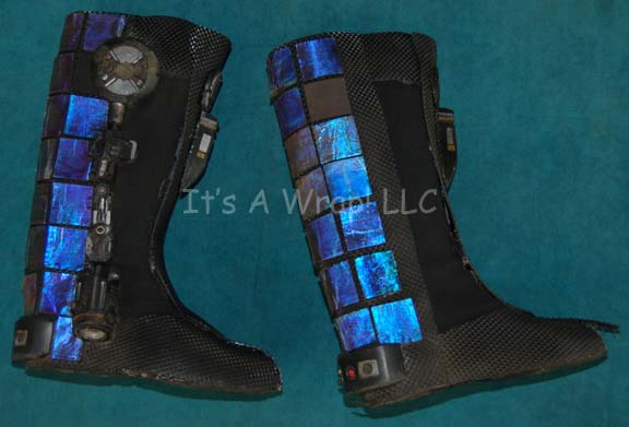 A pair of orbital skydiving stunt boots for wear by a female. The boots were featured in the Star Trek: Voyager episode “Extreme Risk” created for the opening scene during which “B’Elanna Torres” (Roxann Dawson) takes up the hobby. The items are heavy duty with neoprene inside and out, with … |