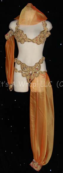 A costume featured in the Star Trek: Voyager episode “False Profits”; wherein the “Voyager” crew comes upon two Ferengi who are also trapped in the Delta Quadrant, and are exploiting a primitive culture's myths to be worshipped as gods. This costume consists of a bikini featuring a multicolored floral design … |