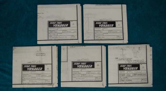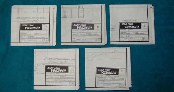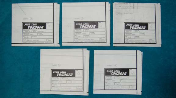 A lot of five schematics for sets featured in various episodes of Star Trek: Voyager. The items are labeled “ward room” but appear to instead be schematics of what became the mess hall. Schematics include general floor plan, walls and specifics on the tables and bays of replicators. The items … |