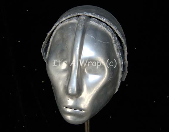 An injection molded mask featured in the Star Trek: Voyager episode “Prototype”. The mask is the front piece and rear part of the head. It is painted metallic silver and is distressed to appear dented on the right side of the forehead where it is painted to appear ‘damaged’. The … |
