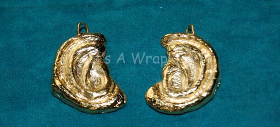 A set of two opposing molded Ferengi themed ears cast in gold colored shiny metal appearing in the Star Trek: Voyager episode “False Profits”. The items are punctured at the top for metal loops that connect them to any kind of chain or other jewelry. In the episode the items … |