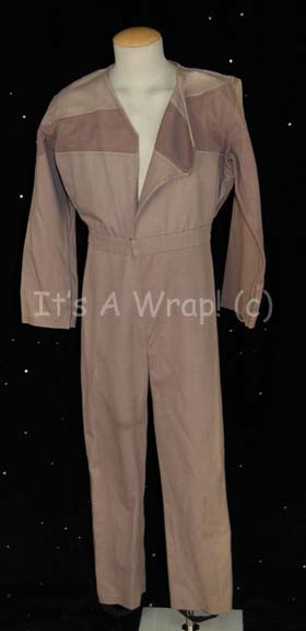 A costume featured in the premiere episode of Star Trek: Voyager, “Caretaker”. This costume is that of one of the prisoners of the penal colony in New Zealand where “Tom Paris” (Robert Duncan McNeill) was being detained and consists of a long-sleeved, full-length, mauve jumpsuit featuring darker accents across the … |