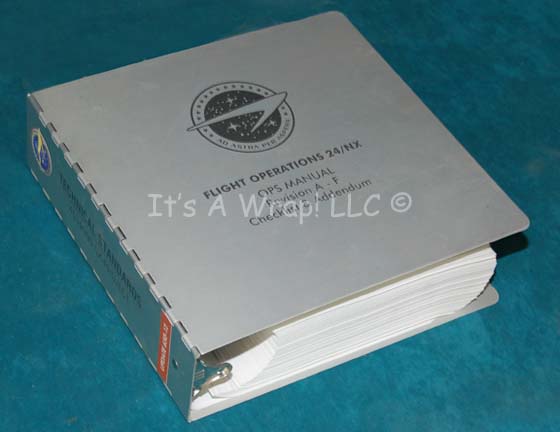 A large metal binder featured in the Star Trek: Enterprise episode “First Flight”. The item is filled with high quality white paper, three hole punched and separated by dividers to appear filled. The exterior of the item features adhered graphical applications of the Starfleet Command emblem in grayscale and one … |