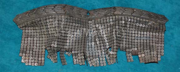 A Ferengi costume accessory like those appearing in early episodes of Star Trek: The Next Generation like “The Last Outpost” and “The Battle”. The item is a mesh fabric with plastic squares to create a chain-mail effect, with a molded rubber bracing at the top. The bracing is broken for … |