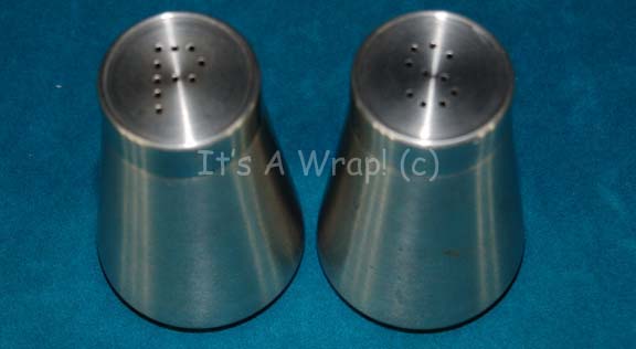 A lot of two items featured in various episodes of Star Trek: Voyager. This lot consists of a set of salt and pepper shakers use in the mess hall; they match the mugs from the same series in that they are polished silver-colored metal with a screw on lid and … |