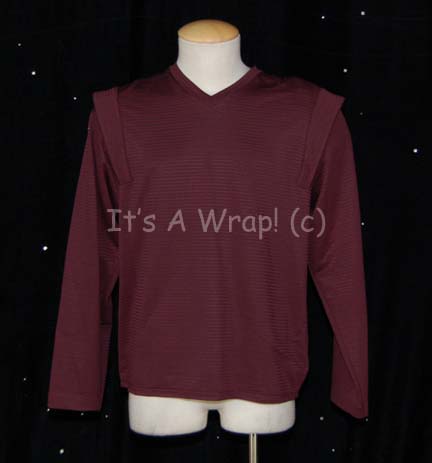 A costume featured in the Star Trek: Voyager episode “Basics: Part II”. This costume is that of one of the female natives of the planet the Voyager crew was left on when the Kazon-Nistrim took over the ship, it consists of a top and trousers made to look like it … |