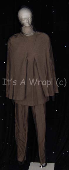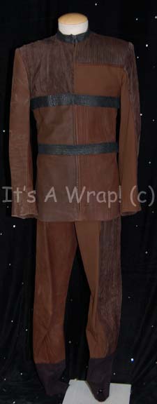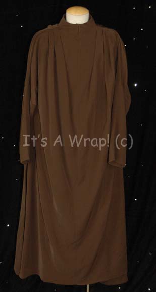 A costume featured in the Star Trek: Voyager episode “Think Tank”. This costume is that of the primary intermediary of the titular group “Kurros” (Jason Alexander), it consists of a long-sleeved, full-length brown robe featuring pleated accents along the shoulders and matching, overall-style trousers. There is a small hole in … |