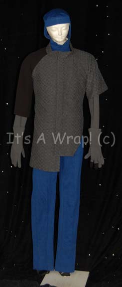 A costume featured in the Star Trek: Voyager episode “Thirty Days”. This costume is for wear by Benjamin Livingston as Deputy Consul Burkus of the Monean Maritime Sovereignty, it consists of a long-sleeved, full-length blue jumpsuit with gray sleeves, a dark-gray, short-sleeved over shirt with a textured diamond pattern and … |