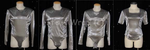 A costume featured in the Star Trek: Voyager episode “Virtuoso”; wherein the “Voyager” crew assists an alien race who never evolved music so that when they hear “The Doctor” (Robert Picardo) singing while he treats them, he becomes an instant celebrity. This costume consists of a short-sleeved, metallic-silver, jumpsuit with … |