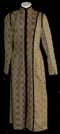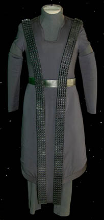 This costume is a female Romulan Senator's Robe as seen in the Star Trek: Deep Space Nine episode “Inter Arma Enim Silent Leges”. The robe has an olive-colored checkerboard pattern along the right two-thirds of the robe changing to a diamond pattern on the left side. There is black trim … |