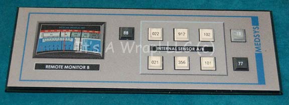 A piece of set dressing similar to those featured throughout Star Trek: Enterprise. This item is a piece of smoked acrylic with a gray, graphical application adhered to the front, beveled edges, and a series of black, white, and grey faux rubber buttons featuring a label that reads ‘Internal Sensor … |