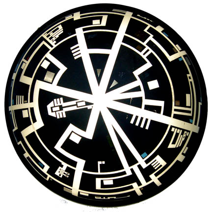 This fabulous console dome is made of vacuum formed opaque plastic presumably used on sets built for Star Trek: The Next Generation series. Black matte paint has been applied to sections of the dome to create the basis of the design and simulate controls. Metallic red, blue and gold strips … |