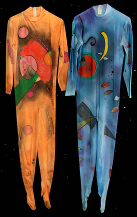 These two colorful circus performer costumes are from an artificial reality created by the Kohl during the Star Trek: Voyager episode “The Thaw” in which “Harry Kim” (Garrett Wang) and “B'Elanna Torres (Roxann Dawson) find themselves in a twisted computer program based on fear. Both Lycra jumpsuits have long sleeves, … |