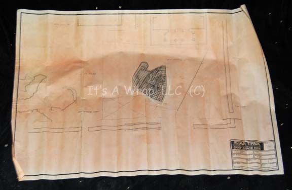 A schematic for a stage plan to be used in multiple episodes of Star Trek: Deep Space Nine. This item is a schematic for the plan or an entire sound to be used in the filming of multiple episodes; it features a transparent appliqué on the surface and information such … |