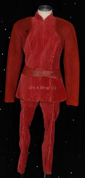 A costume featured in the Star Trek: Voyager episode “Imperfection”; wherein “Seven of Nine” (Jeri Ryan) has to find another cortical implant or she will die and refuses “Icheb’s” (Manu Intiriyami) because he may not be able to survive without it either. This costume us for wear by Debbie Grattan … |