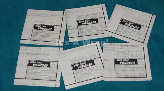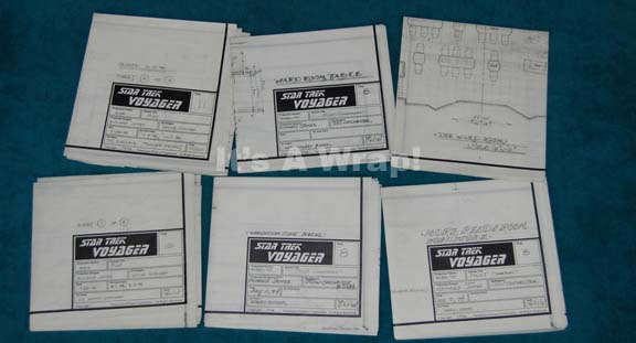 A lot of schematics for sets featured in the Star Trek: Voyager episode “Learning Curve” and “Initiations”. These schematics include general cargo bay detail, further detail for a false door, a Red Alert light, a schematic for changing a shuttle bay set into a cargo bay, and a ‘floating pallet’. … |