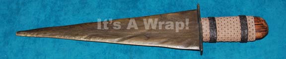 A prop weapon appearing in the Star Trek: Voyager episode “Muse” for use by the guards to the warlord. The item is a prop metal gladius (sword) made to appear forged from bronze with a short hand grip that is wrapped in leather accents. The item is pointed by not … |