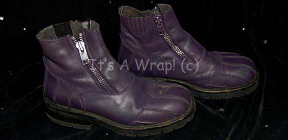 A pair of boots and spats featured in various episodes of Star Trek: Deep Space Nine for Klingons. These boots are knee-high, black, rubber, painted gray with black vinyl spats that fit over them; fixed in place by black elastic stirrups and large Velcro placements up the back of the … |