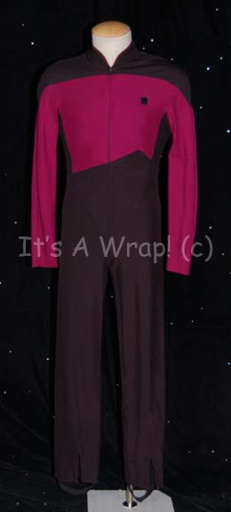 A costume featured in various episodes of Star Trek: The Next Generation and earlier episodes of Star Trek: Deep Space Nine. This costume is a Starfleet uniform jumpsuit featuring black shoulders, a Command Red chest, back, sleeves, and piping around the Mandarin collar; a black waist and legs that end … |