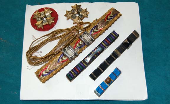 A set of flag officer's commendations and ranks featured in Star Trek VI: The Undiscovered Country. The rank badges are gold and silver colored metal pins with wire backs, one is affixed to a red placement for the left sleeve forearm. The lot also contains gold fringed multi-colored trim with … |