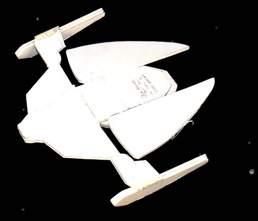 A camera test model created for use during production of episodes of Star Trek: Deep Space Nine. The item is a white foam core fashioned Jem’Hadar attack ship made from adhered elements measuring approx. 13.5 X 13 X 2 inches with an inscription on the dorsal side reading ‘Jem Hadar … |