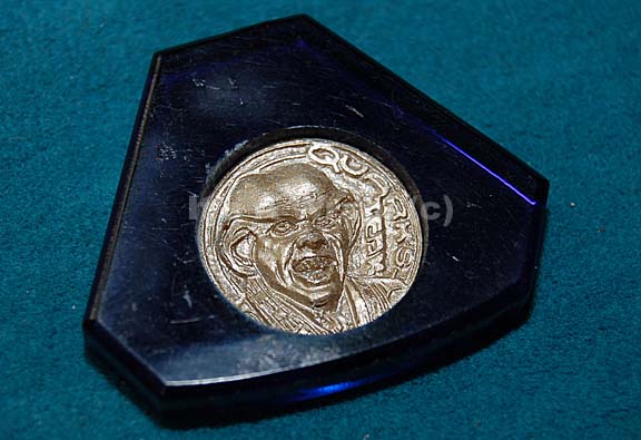 A single prop dabo game token like those appearing variously in episodes of Star Trek: Deep Space Nine. The item is a blue a shaped acrylic token with a molded resin metallic silver colored ‘coin’ embedded in the center. The coin features a relief of “Quark’s” (Armin Shimerman) face and … |