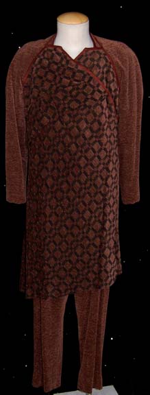 A costume featured in the Star Trek: Deep Space Nine episode “Rejoined”, altered and then used in the Star Trek: Enterprise episode “Demons”. This costume consists of a long-sleeved, brown, knee-length tunic with lighter-brown trim around the collar and down the front; a panel down the front and back featuring … |