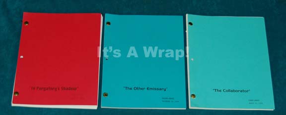 A lot of three scripts for episodes of Star Trek: Deep Space Nine. The first script is for the episode “The Collaborator”; wherein “Vedek Bareil” (Philip Anglim) is accused of collaborating with the Cardassians during the Occupation as a way of discrediting him and eliminating him as a threat to … |