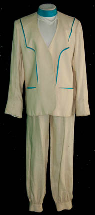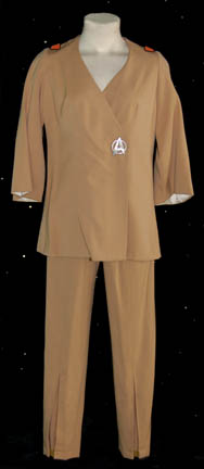 A costume featured in Star Trek I: The Motion Picture for wear by Nichelle Nichols in her portrayal of “Uhura”. The costume is a tan colored Class-C jacket wrap Starfleet uniform with matching trousers. The wrap features a cropped sleeves and a metallic pewter colored metal Starfleet emblem affixed at … |