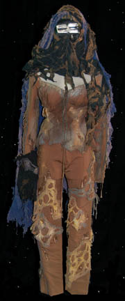 A costume featured in Star Trek II: The Wrath of Khan for wear by Nancy Rogers in her role as one of “Khan's” (Ricardo Montalban) genetically engineered women, the navigator of the hijacked “USS Reliant”. The costume is brown trousers with blotches of thrashed and frayed fabric affixed intermittently and … |