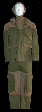 This costume was worn by a Bre'el IV inhabitant during the Star Trek: The Next Generation episode “Deja Q” in which the U.S.S. Enterprise-D tries to assist Bre’el IV however the scientist informs the crew that their efforts to restore the Bre’el moon has failed. The khaki green jacket has … |